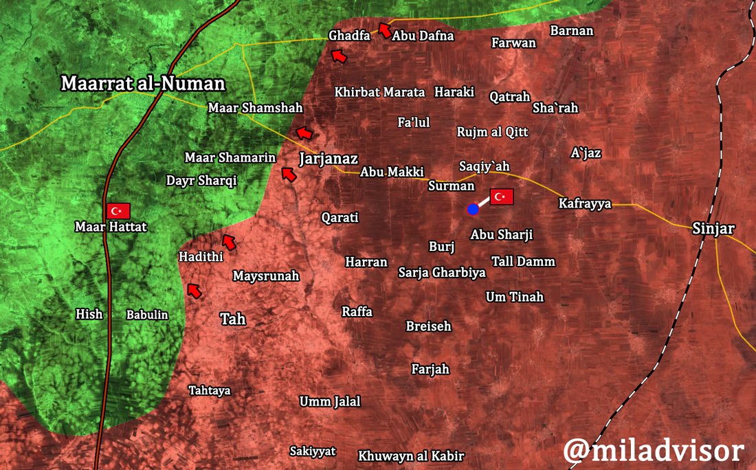 Está duro seguir el avance del ejército sirio en esta nueva ofensiva, espectacular. Y ahora se anuncia la liberación de Jarjanaz, una ciudad principal del sur de Idlib y a tiro de piedra de Maarat al Numan