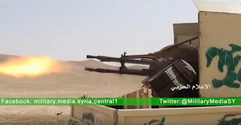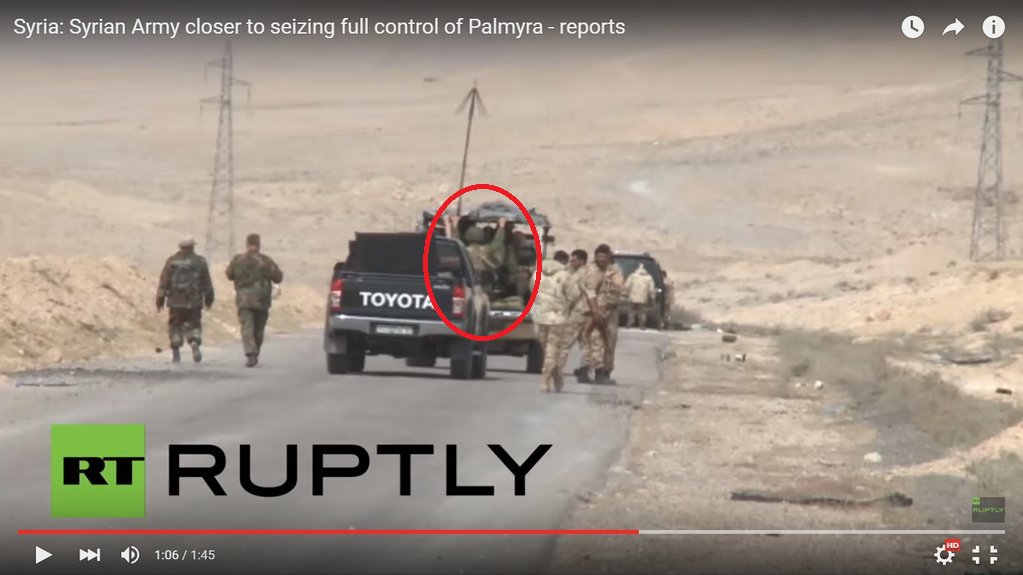 NI EL EJERCITO SIRIO / ALIADOS, SE TOMAN LA MOLESTIA DE CAMUFLAR UN POCO LOS COLORES DE LAS CAMIONETAS, SIN IMPORTAR LO LLAMATIVO Q ESTE SEA: