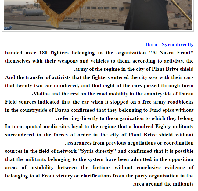 180 terrorist rebels surrendered themselves with 22 vehicles and all their weapons to the Syrian Army in Izra, Daraa