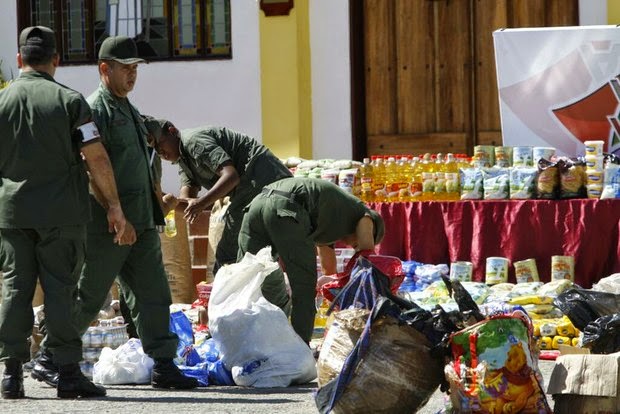 Acompañado de funcionarios de la Guardia Nacional Bolivariana (GNB), el ministro para la Alimentación, Carlos Osorio, la ministra para el Comercio, Isabel Delgado, y el superitendente de Precios Justos, Andrés Eloy Méndez, mostró a los venezolanos parte de los alimentos incautados en los galpones de la empresa privada Herrera C.A.